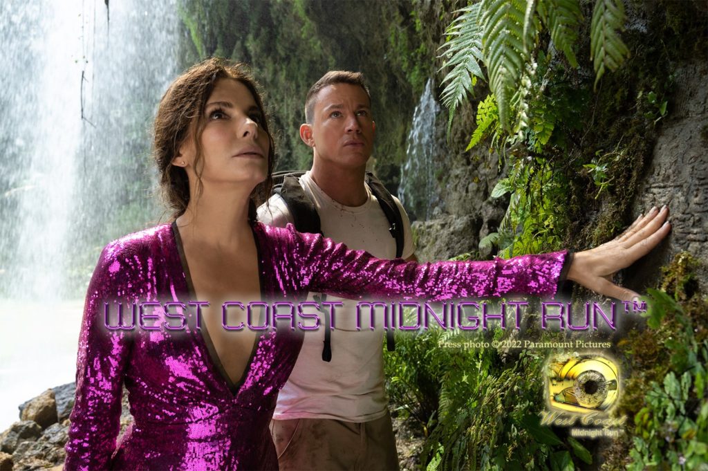 The Lost City movie review presented by West Coast Midnight Run publication, starring Sandra Bullock, Channing Tatum, Daniel Radcliffe and Brad Pitt where a romance adventure novelist falls into an adventure similar to one of her novels, searching for lost treasure and possibly finding the impossible romance along the way.
