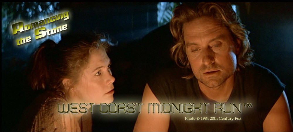 When it was time to write up the review, I had to do some homework dang it, Romancing the Stone came back roaring to life from the embers of my mind, a movie that was intense, dazzlingly funny and had sparks galore from the Michael Douglas and Katheen Turner onscreen chemistry.