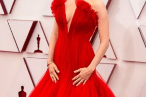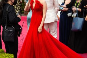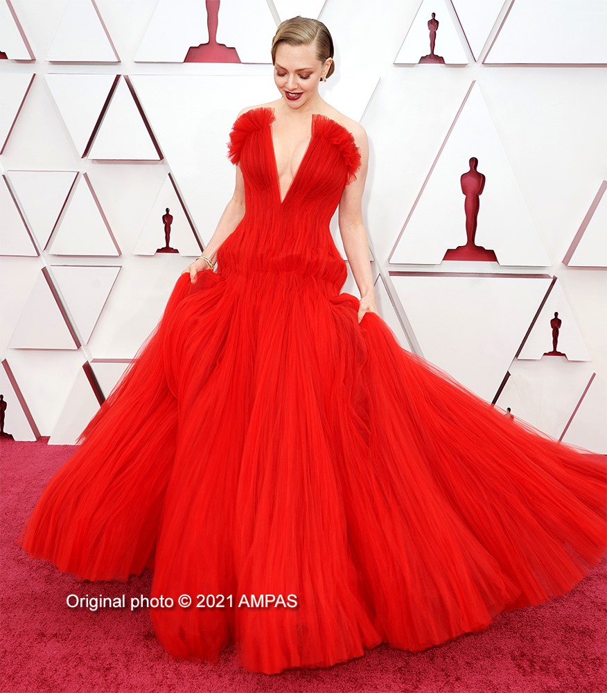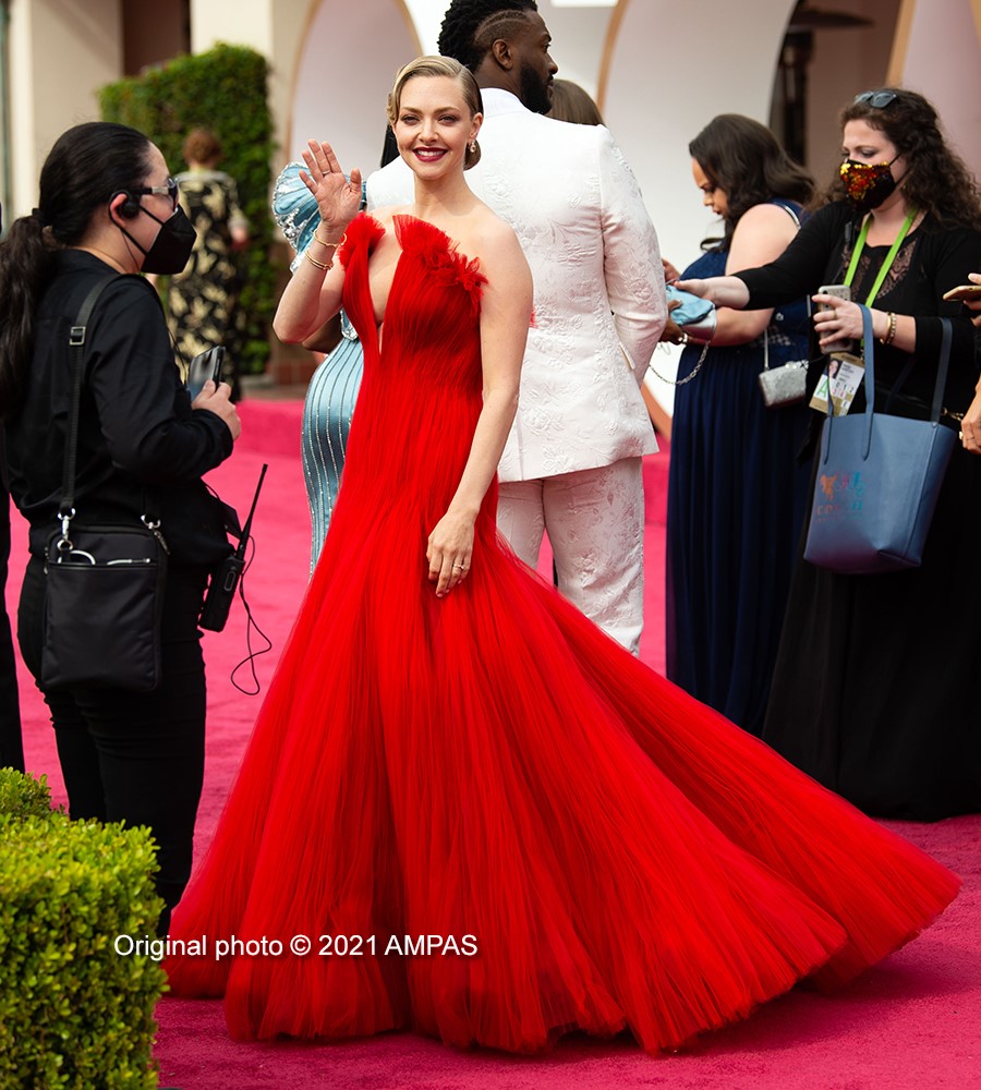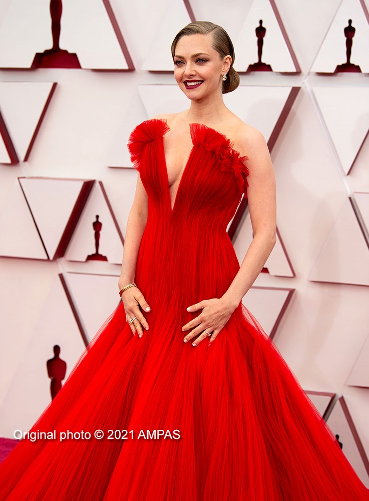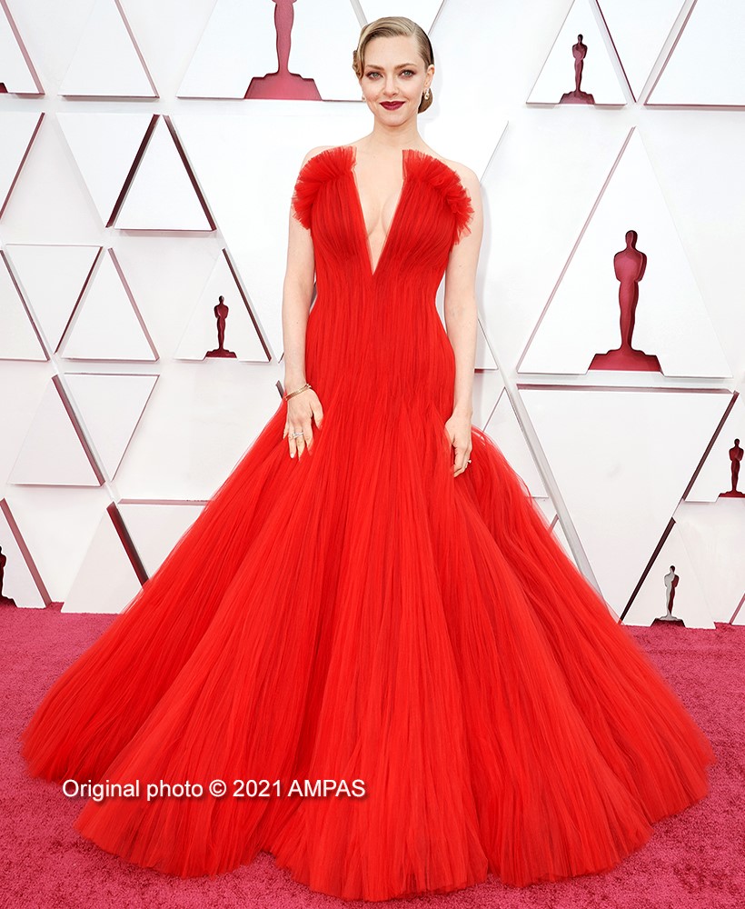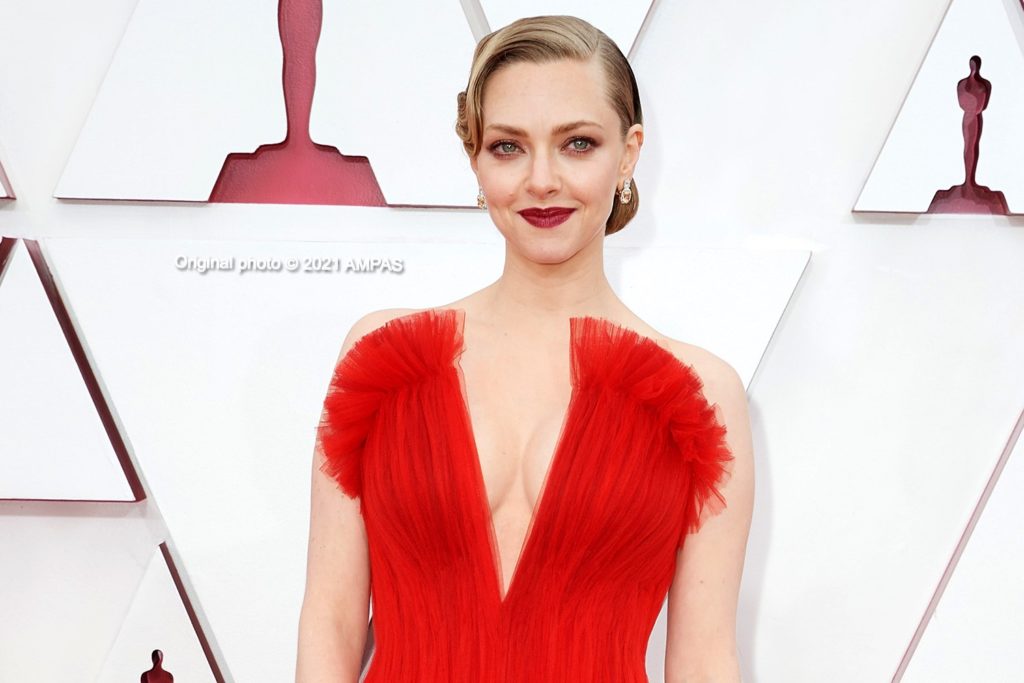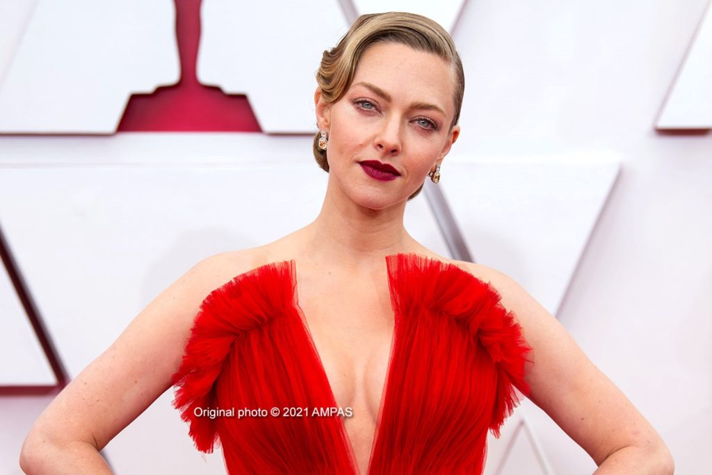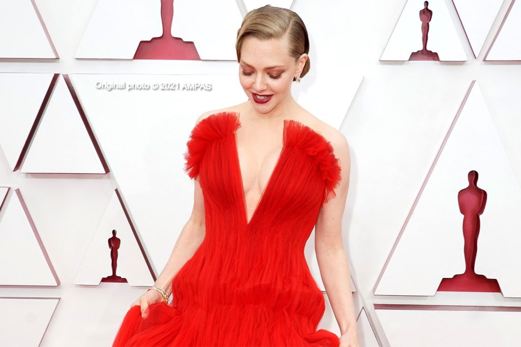 Amanda Seyfried was the knockout contender with the delightful Mank nominations, she simply lit up the red carpet with her incredible, classic styling, red Armani dress, showcasing its generous frontal top slit.